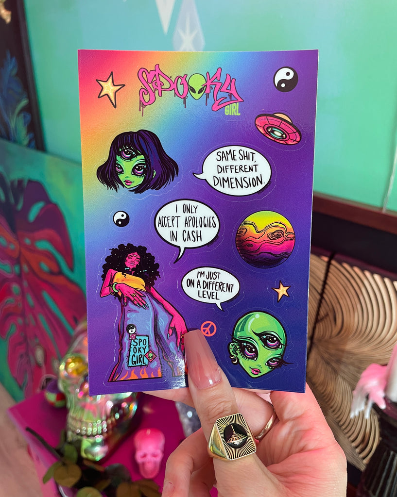 As a token for your travels, bring home a one of a kind original artwork by the the artist behind the Spooky Girl universe, Andi.